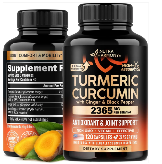 - Turmeric Curcumin 2365 mg — discover the ancient power of Turmeric in its most effective form — delivering a potent 2250mg blend of Turmeric Root and Curcumin extract. For centuries, Turmeric has been celebrated for its golden benefits — supporting joint comfort, antioxidant defense, and immune balance.